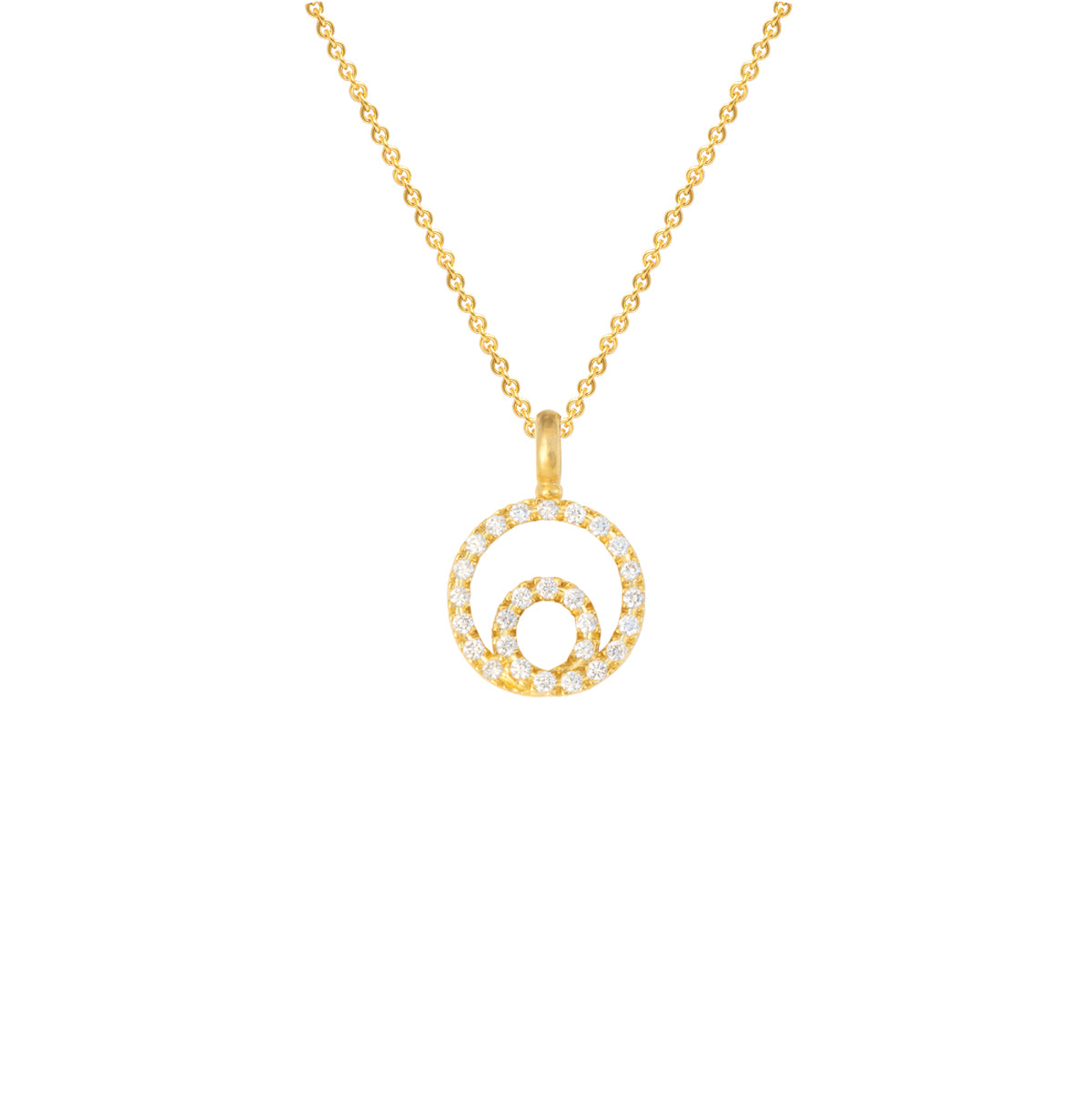 Dieser Anhänger vereint die zwei geschwungenen Kreise in harmonischer Leichtigkeit, getragen von 27 präzise gefassten Brillanten. Ein Symbol für Balance und Verbundenheit, das seine eigene leuchtende Umlaufbahn erzeugt.